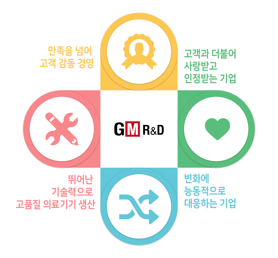 “지엠 알앤디”는 신뢰와 가치를 바탕으로 고객에게 최고의 의료기기를 제공해 드릴 것을 약속 드립니다.